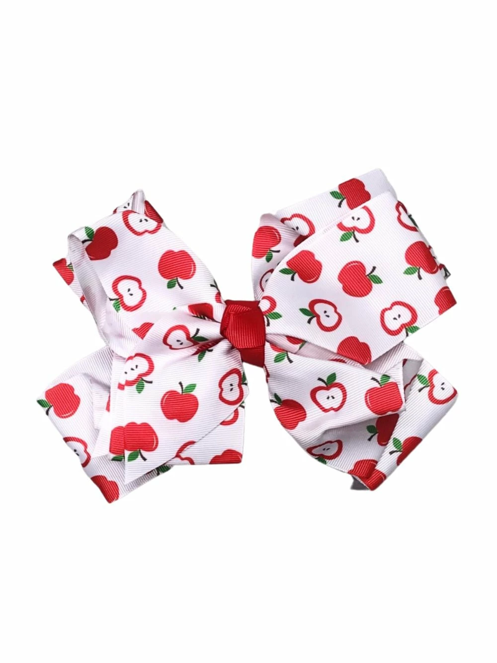 Accessorize your back to school style with our Apple A Day Girls Back To School Fall Large Hair Bow! This darling hair bow features red and white apples and a red knot. We are loving this bow for the first day of school, apple picking, and so much more. Pick up this hair bow for your little school girl and be sure to checkout our other adorable hair bows.