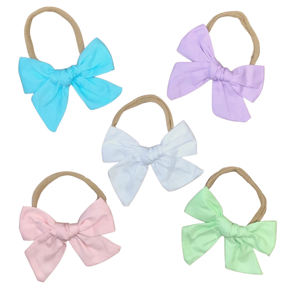 Features of our 5 Pack Pastel Cotton Bow Nylon Toddler or Baby Headbands