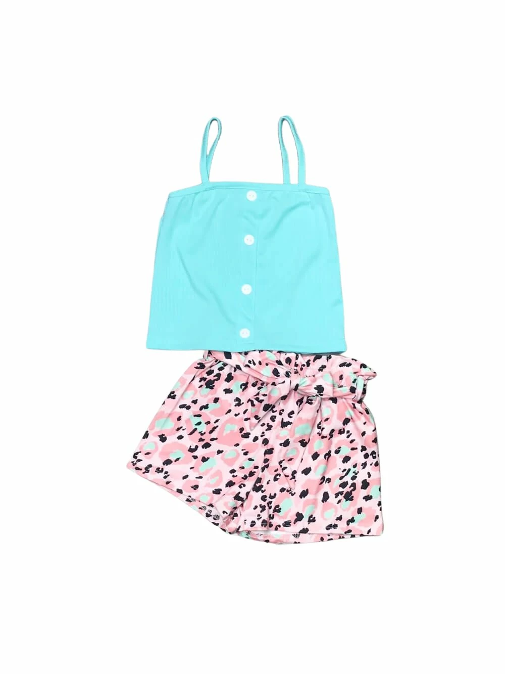 Shine bright this summer in our Bright Blue Speckled Pink Dot Girls Shorts Outfit! This fun set comes with a bright blue ribbed tank top that features darling button detailing. The set also comes with a pair of unique pink shorts which feature a speckled black and blue dot pattern, a tie bow belt, and an elastic waistband. We are loving this fashionable and fun set with a pair of white sneakers and a coordinating pink hair bow. This adorable outfit is perfect for playdates, running errands, going out to dinner, and so much more. Pick up this must have outfit and be sure to checkout our other summertime best sellers.