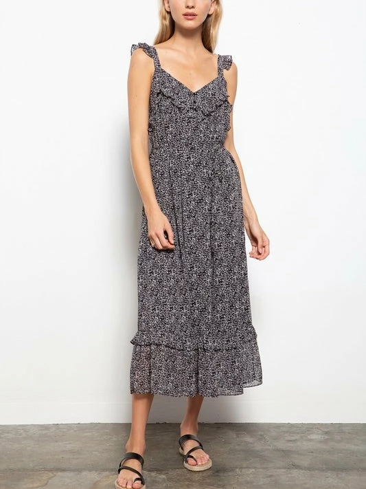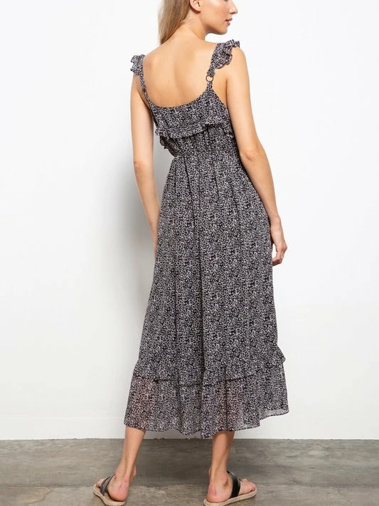 Give us a moment while we try to stop obsessing over our Flower Print Ruffle Detail Women’s Tank Midi Dress Black! The fashion forward black sleeveless mid length dress features a floral pattern, ruffle detailing, and a v-neck cut. The best part about this dress is that you can dress it down with a denim jacket and sneakers or you can dress it up with some trendy sandals or wedges. The dress is perfect for parties, vacations, weddings, dinner dates, events, and so much more! Hurry babe and add it to your cart before it’s gone!