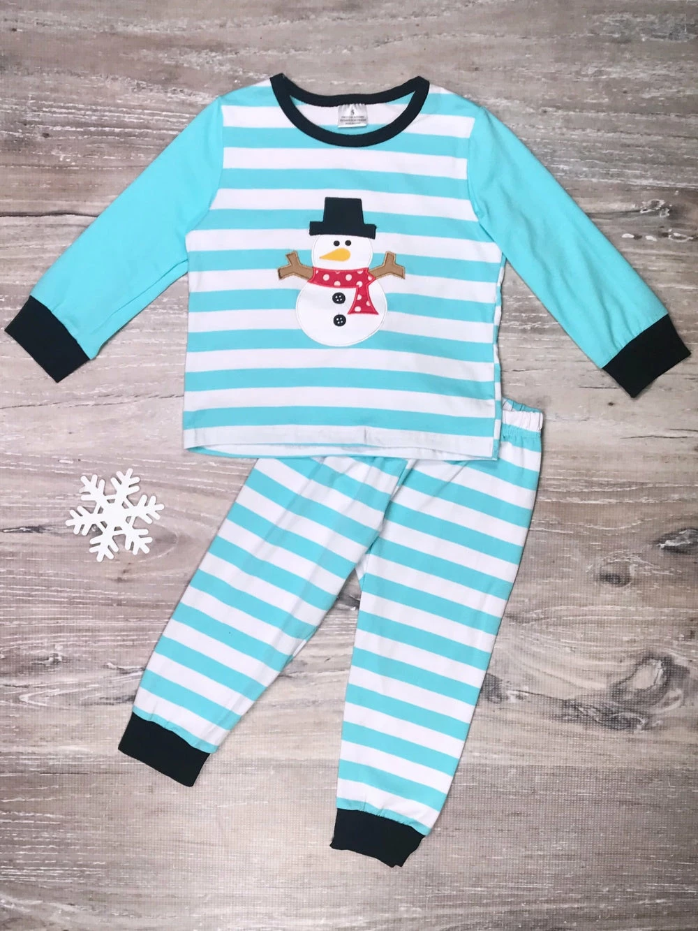 Spoil your little man with our cozy Frosty Blue Snowman Stripe Boys Winter Pajamas! The super fun set comes with a blue long sleeve pajama top that features a striped pattern, a snowman detail, and black trim. The set also comes with a pair of coordinating blue and white striped pajama pants that feature an elastic waistband and black trim. We are loving this pj set with some cozy slippers and a super soft blanket. The pajamas are perfect for sleepovers, movie nights, baking cookies, writing letters to Santa, and so much more! Pick up this set while it’s still in stock and checkout our other cozy pajama sets!