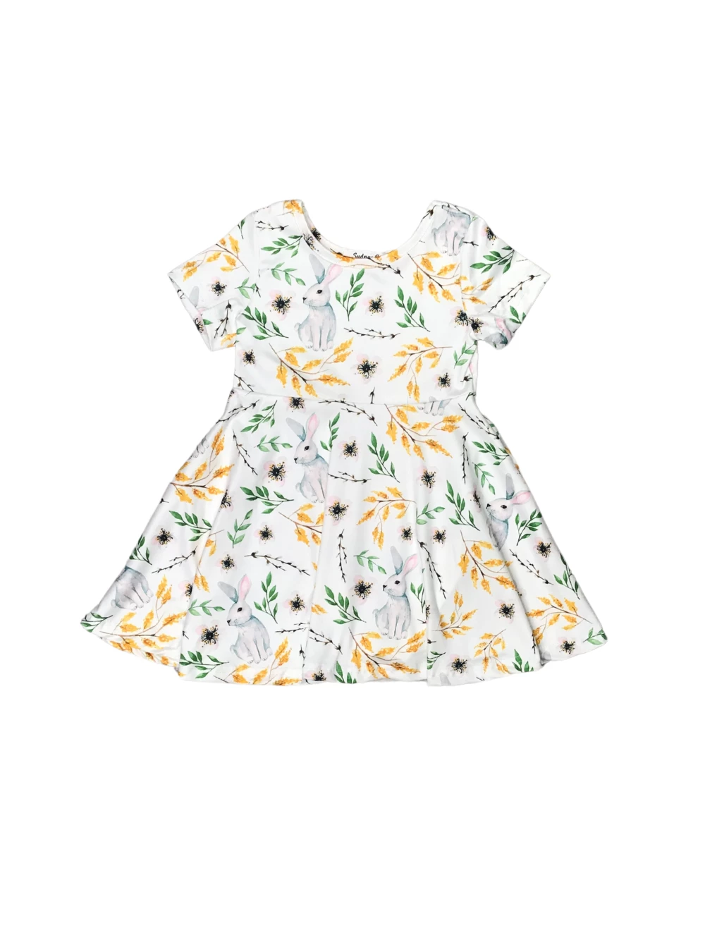 Easter will not be complete without our classic Ivy Rabbit Short Sleeve Girls Easter Skater Dress! The timeless short sleeve skater dress features an ivy rabbit pattern, a scoop neckline, and cinched waist. We are loving this dress by itself with some sandals for a more dressy look or with some sneakers and a denim jacket for a more laid back look. The dress is perfect for school, church, Easter brunches, egg hunts, running errands, and so much more. Add this classic dress to your little one’s wardrobe and be sure to checkout our other timeless Easter dresses and sets.