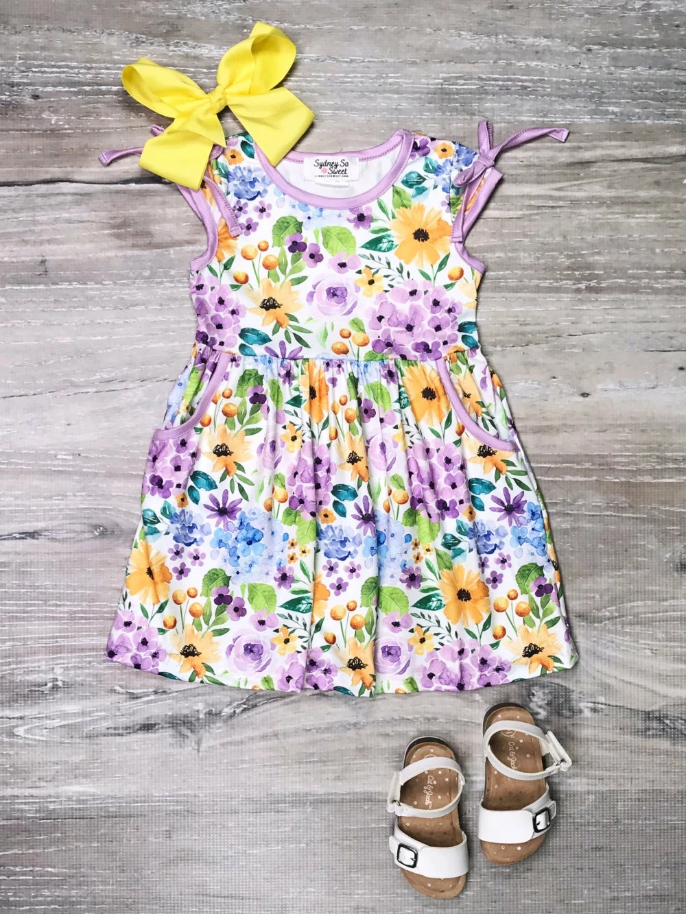 Look lovely in lilac in our enchanting Lilac You A Lot Purple & Blue Floral Girls Dress! The adorable short sleeve dress features a blue and purple floral pattern, lilac trim, tie bow details, and pockets. We love how you can dress up this piece with some sandals and a hair bow or you can dress it down with a jacket and some classic white sneakers. The beautiful dress is perfect for school, parties, shopping trips, vacations, picnics, and so much more. Add this darling dress to her collection while you still can and be sure to take a look at our other amazing dresses and outfits!