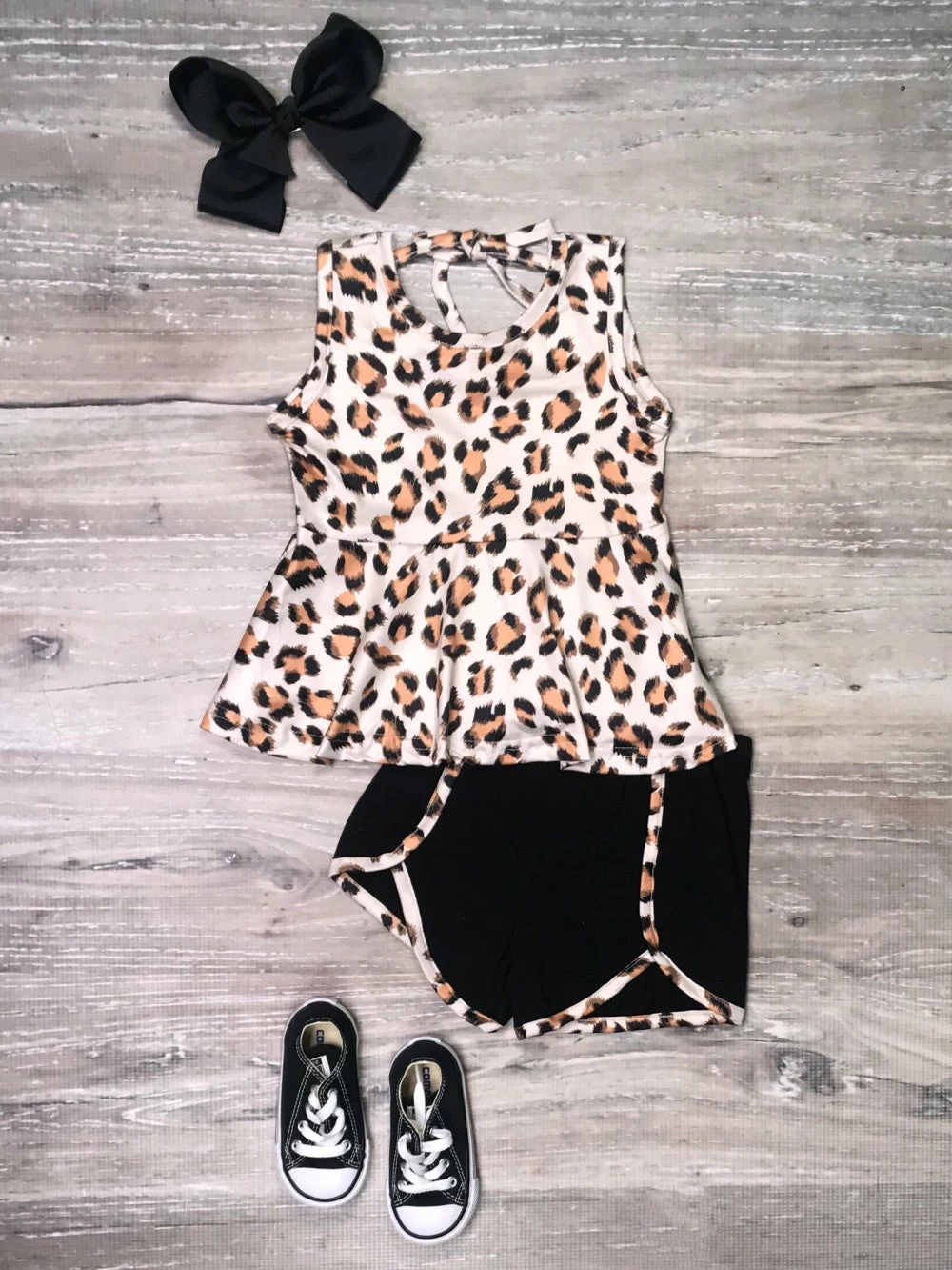 Load up on leopard with our sassy and stylish Loving Leopard Brown & Black Peplum Tank Girls Shorts Outfit! The must have set comes with a sleeveless top that features a leopard pattern, peplum style cut, ruffle trim, and a tie back detail. The set also comes with a pair of coordinating black shorts that feature leopard patterned trim and an elastic waistband. We are loving this sassy set with some classic white sneakers and a coordinating hair bow. The outfit is perfect for playdates, vacations, zoo trips, and so much more. Pick up this outfit and be sure to checkout our other best sellers.