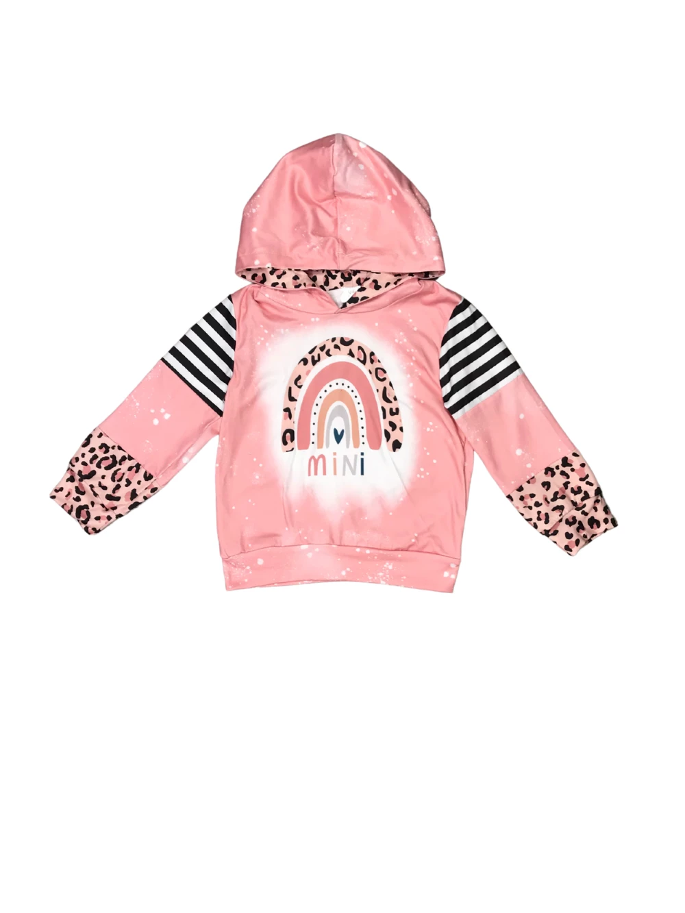 Cozy up this Valentine’s season with our Mini Magical Rainbow Pink Cheetah Heart Girls Hooded Sweatshirt! The pink long sleeve sweatshirt features a cheetah and striped pattern, a rainbow detail, and the word “Mini.” We are loving this hoodie with some denim jeans, leggings, bell bottoms, or joggers. The fashionable sweatshirt is perfect for school, lazy days at home, running errands, shopping trips, and so much more. Be sure to checkout this lovely cozy piece while her size is still in stock and don’t forget to checkout our other must have Valentine’s Day pieces.