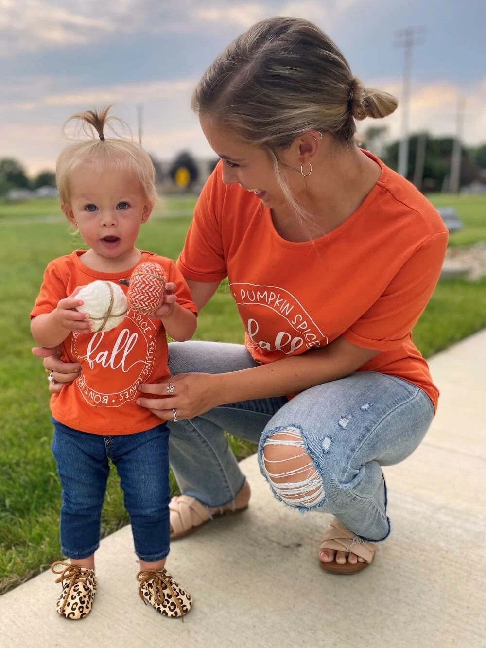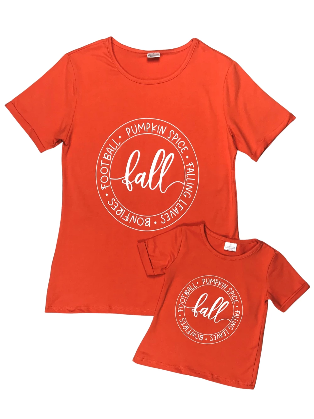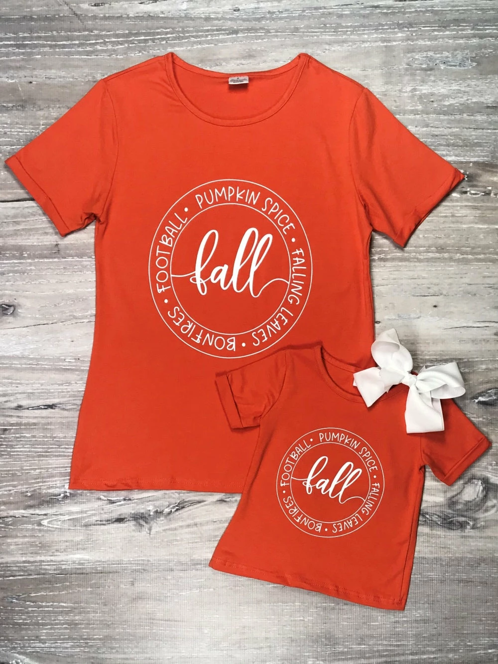 We encapsulated everything that you love about fall into one shirt with our Mom & Me – Fall Football Bonfires Pumpkin Spice Orange T-Shirt! The orange short sleeve top features a circle detail with the word “Fall,” “Pumpkin Spice,” “Falling Leaves,” “Bonfires,” and “Football.” We are loving these staple tees because they’re so easy to pair with jeans, leggings, joggers, or whatever you’re in the mood to wear. You and your little can wear the tops to school, trips to the pumpkin patch, football games, fall festivities, running errands, and so much more! Start off your fall wardrobe by adding this staple top to your cart and checkout our other best selling mommy and me tees.