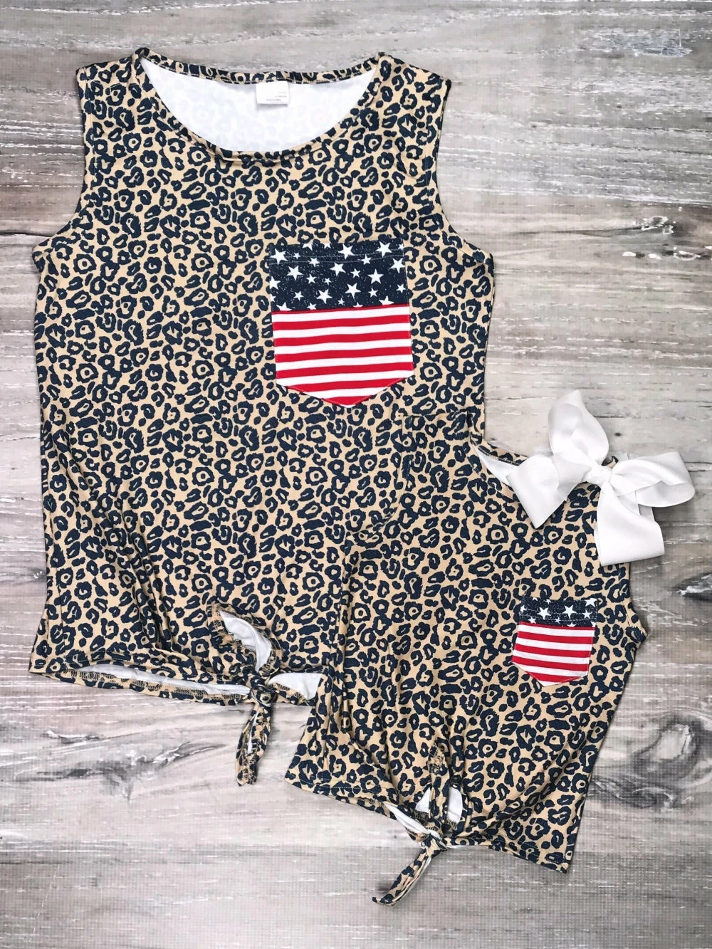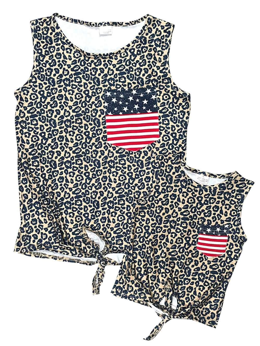 Every American babe needs a little bit of sassy in her wardrobe. Our Mom & Me – Flag Pocket Leopard Tie Tank Top will spice up you and your little’s wardrobe. The tank top features a leopard pattern, a tie detail, and an American flag patterned pocket. We are loving these tops with some denim shorts, a fun pair of sunnies, and some slide on birkey sandals. You and your little one can wear these tops on vacations, trips to grab coffee, running errands, picnics, parties, cookouts, and so much more! Unleash your wild sides and add the tanks to your cart now!