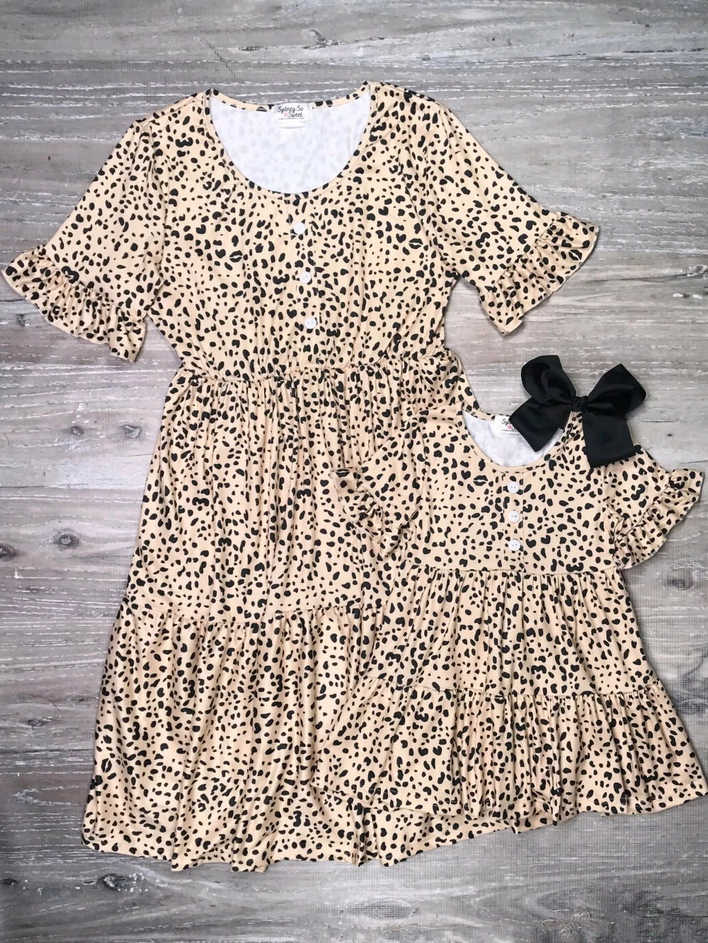 Match your little baby doll in our darling Mommy and Me – Speckled Dot Baby Doll Short Sleeve Matching Dresses! The short sleeve dress features a speckled dot pattern, a baby doll style cut, ruffle detailing, and a scoop neckline. We are loving how you can dress up this piece with some classic sandals or you can dress it down with some basic sneakers and a denim jacket. The dress is perfect for vacations, family photos, mommy and me dates, church, and so much more. Pick up this essential dress for you and your little while your sizes are still in stock and be sure to take a look at our other fashion forward mommy and me pieces!