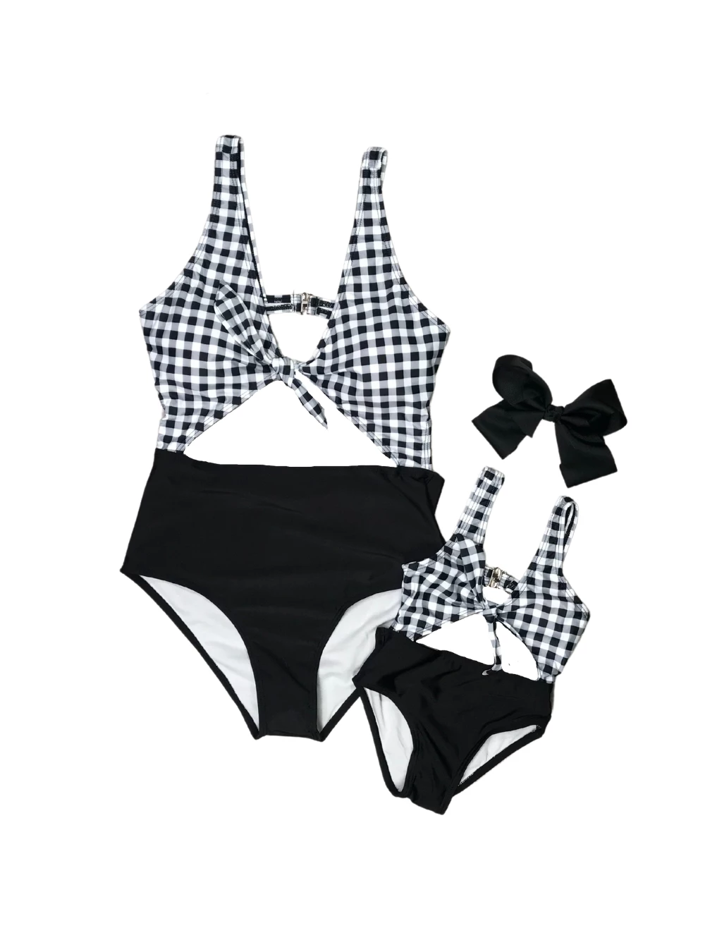 Take on the summer with our classic and fashionable Mom and Me Swimsuits – Black & White Gingham Cutout Matching One Piece! The one piece swimsuit features a black and white gingham pattern along the top, a tie knot detail, and center cutout. We are just loving the cutout as it adds a classic twist on the average one pice. The bathing suit is perfect for family vacations, trips to the waterpark, pool parties, and so much more! Just pair the suit with some sunnies and flip flops and you’ll be ready to take on your fun filled day. Be sure to pick up a suit for you and your little and don’t forget to checkout our other mommy and me swimsuits.