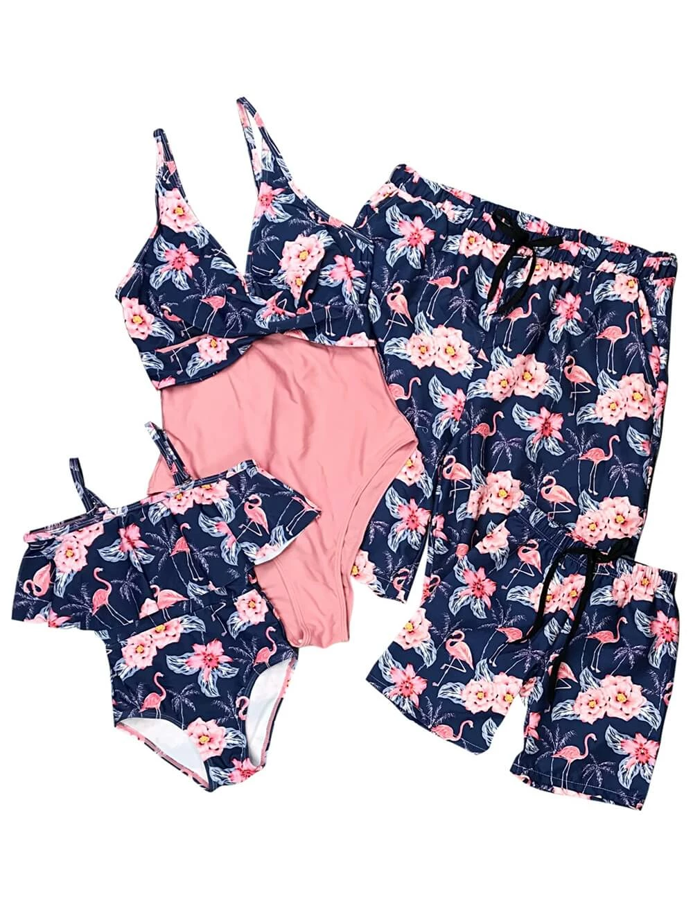 Our matching family pajamas were such a hit that we just had to think of a way to include a little bit of family coordination this summer! Our Navy Tropical Flamingo Matching Family Swimsuits includes a little something for everyone in the whole family. The mom and girl one pieces feature our adorable navy tropical flamingo print and spaghetti straps. The day and boy swim trunks also features the coordinating tropical flamingo print. Dad and boy are unlined since that’s what the men in our life asked for! We are just loving how perfect these swimsuits are for family vacations, lake days, pool parties, and more! Make sure you included the whole family in on the summer fun and add one of each to your cart! Checkout our other swim styles to stock up for that family vaca!