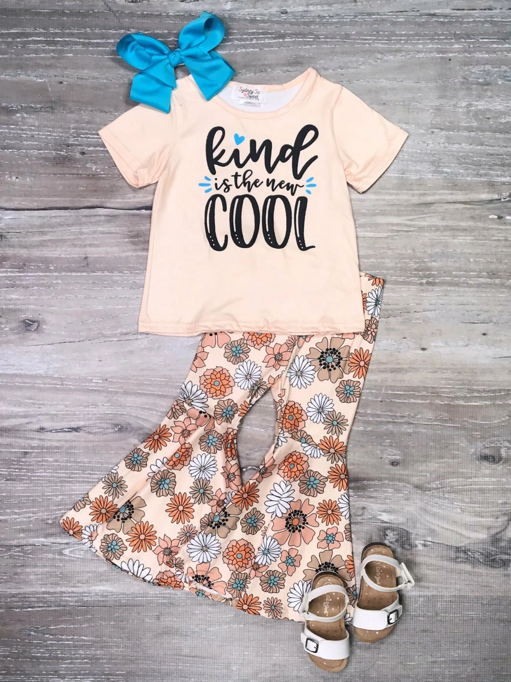 Embrace the kind life with our adorable Kind Is The New Cool Retro Floral Bell Bottom Girls Outfit! The super cute set comes with a short sleeve top that features the phrase “Kind Is The New Cool” and coordinating cutesy details. The set also comes with a pair of bell bottoms that feature a retro floral pattern and an elastic waistband. We are loving this retro set with some sneakers and a coordinating hair bow. The outfit is perfect for school, playdates, running errands, and so much more. Pick up this must have outfit and be sure to checkout our other favs!