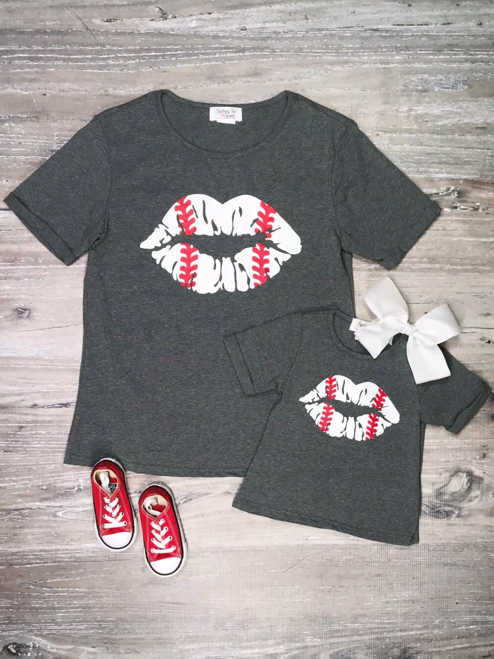 Take on baseball season with our best selling Mom and Me – Baseball Game Day Gray Matching Short Sleeve T-Shirt! The gray short sleeve top features a baseball themed lips detail and cuffed trim. Isn’t the lips detail just so cute and girly?! We are loving the stylish t-shirt with some denim jeans, leggings, shorts, or whatever you’re in the mood to wear. The shirt is perfect for baseball games, running errands, shopping trips, and so much more. Pick up this shirt while your sizes are still in stock and be sure to checkout our other mommy and me must haves.