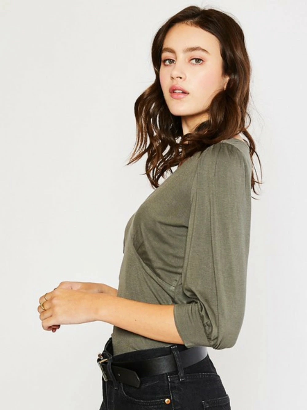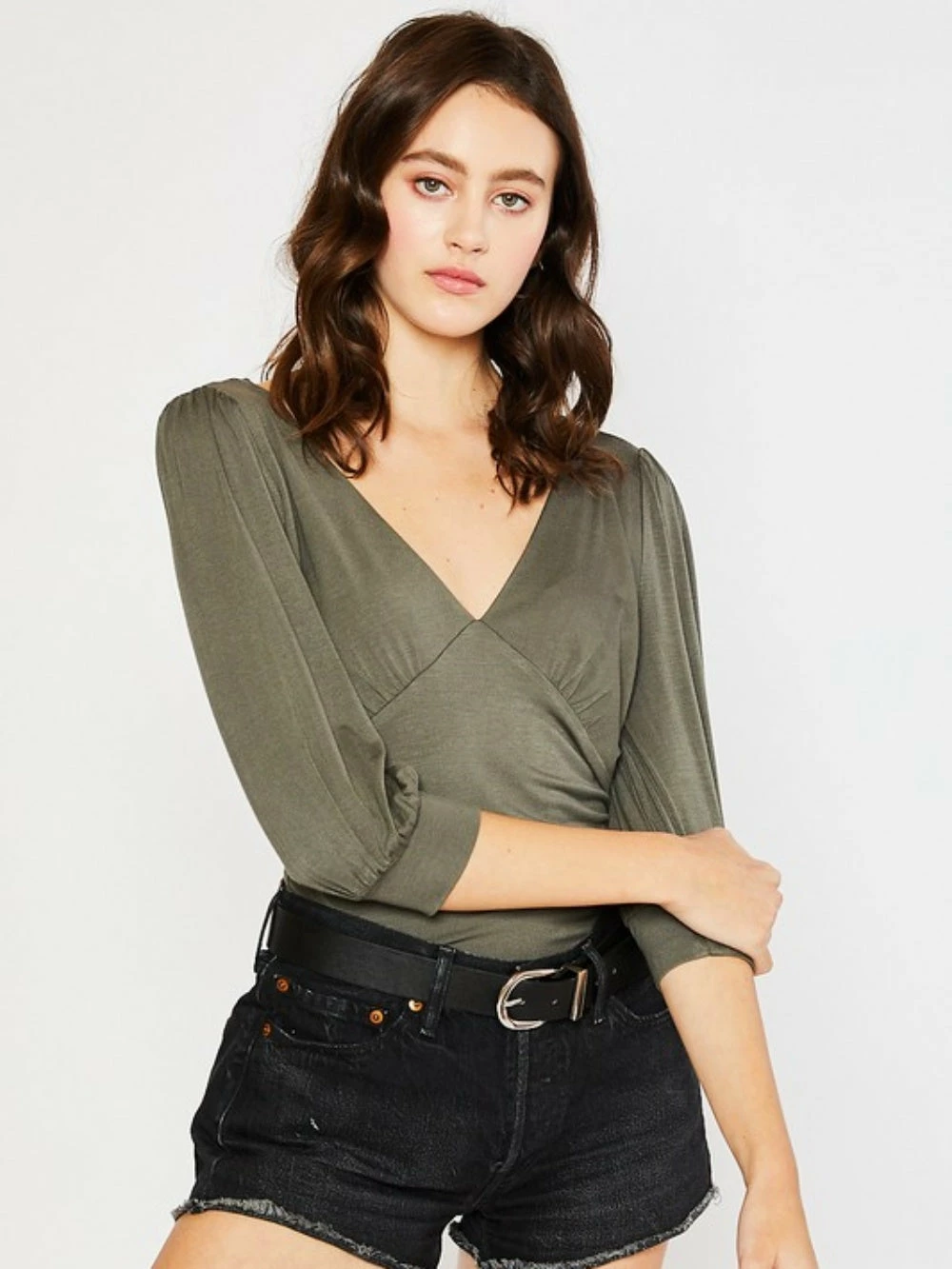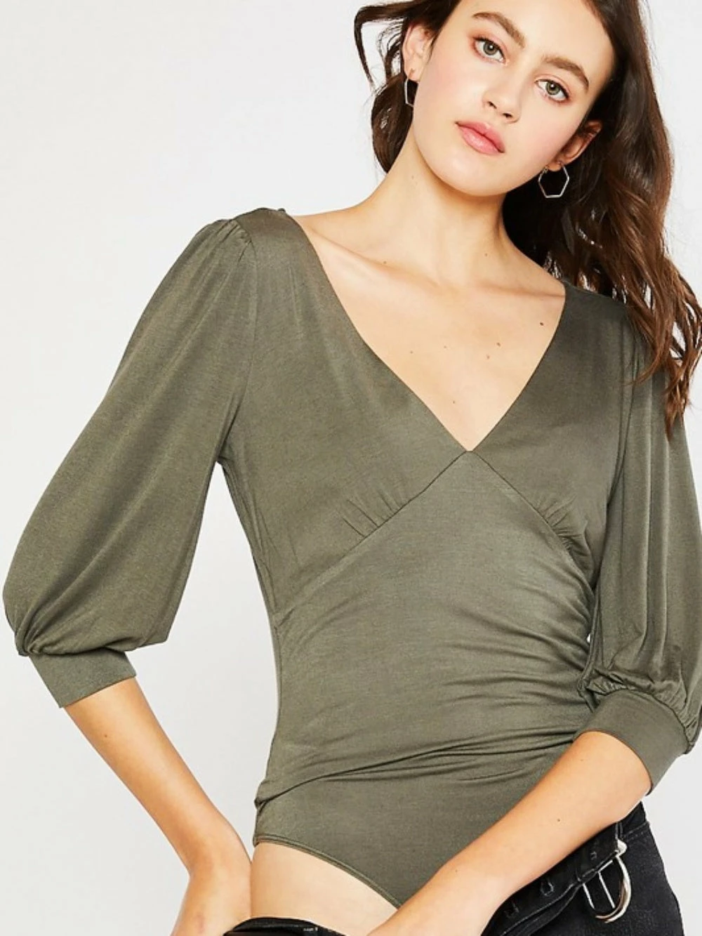We have the ultimate holiday bodysuit for you with our Olive Green Deep V-Neck Balloon Sleeve Women’s Bodysuit! The stretchy olive bodysuit features a v-neck with 3/4 balloon sleeves for that extra girly detail we all need. The bodysuit also includes a button snap closure for easy on and off. We love that you can spice this up for the holidays or a fun work event with a skirt or keep it casual and cute with a pair of SSS jeans! Believe us when we say this stretchy bodysuit is for you.