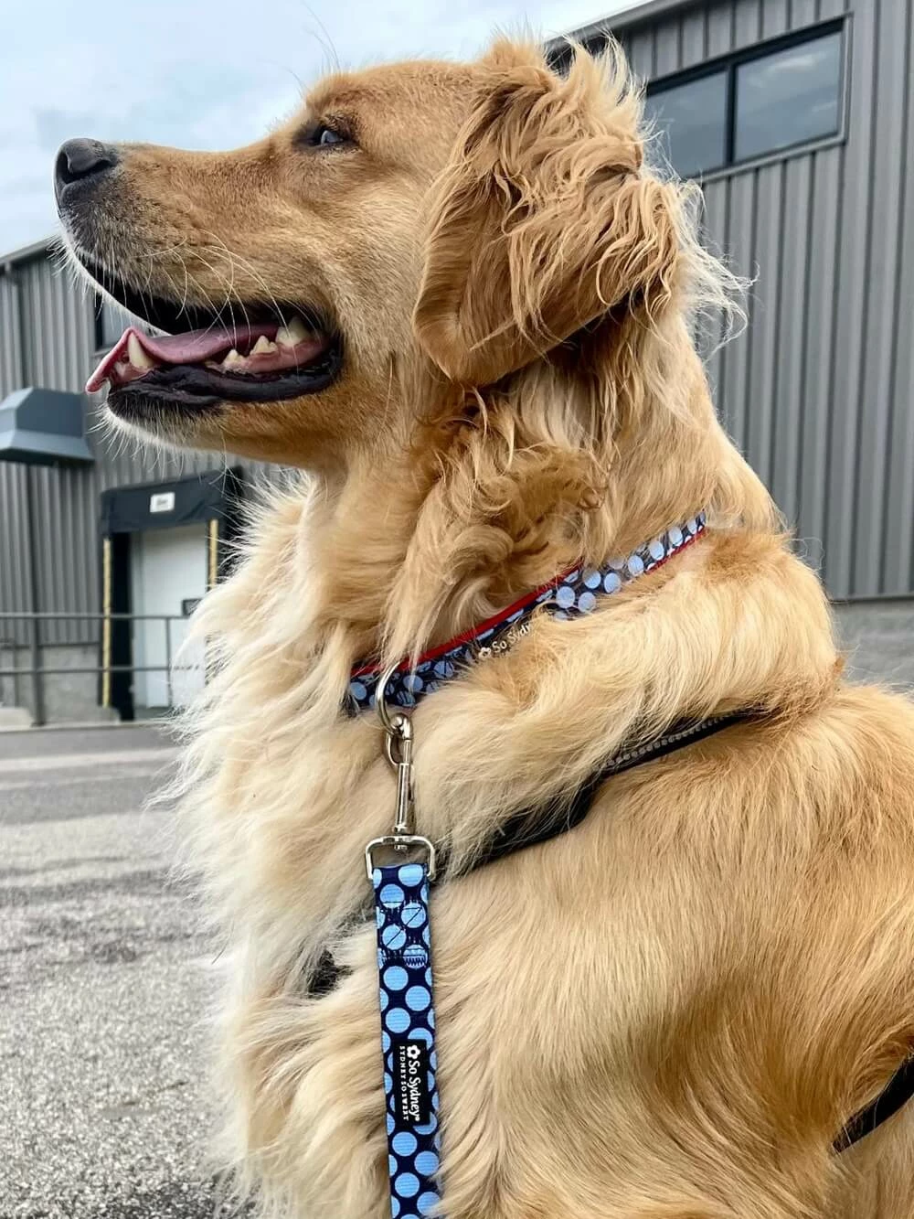 Features of our Red & Blue Jumbo Polka Dot Dog Collar