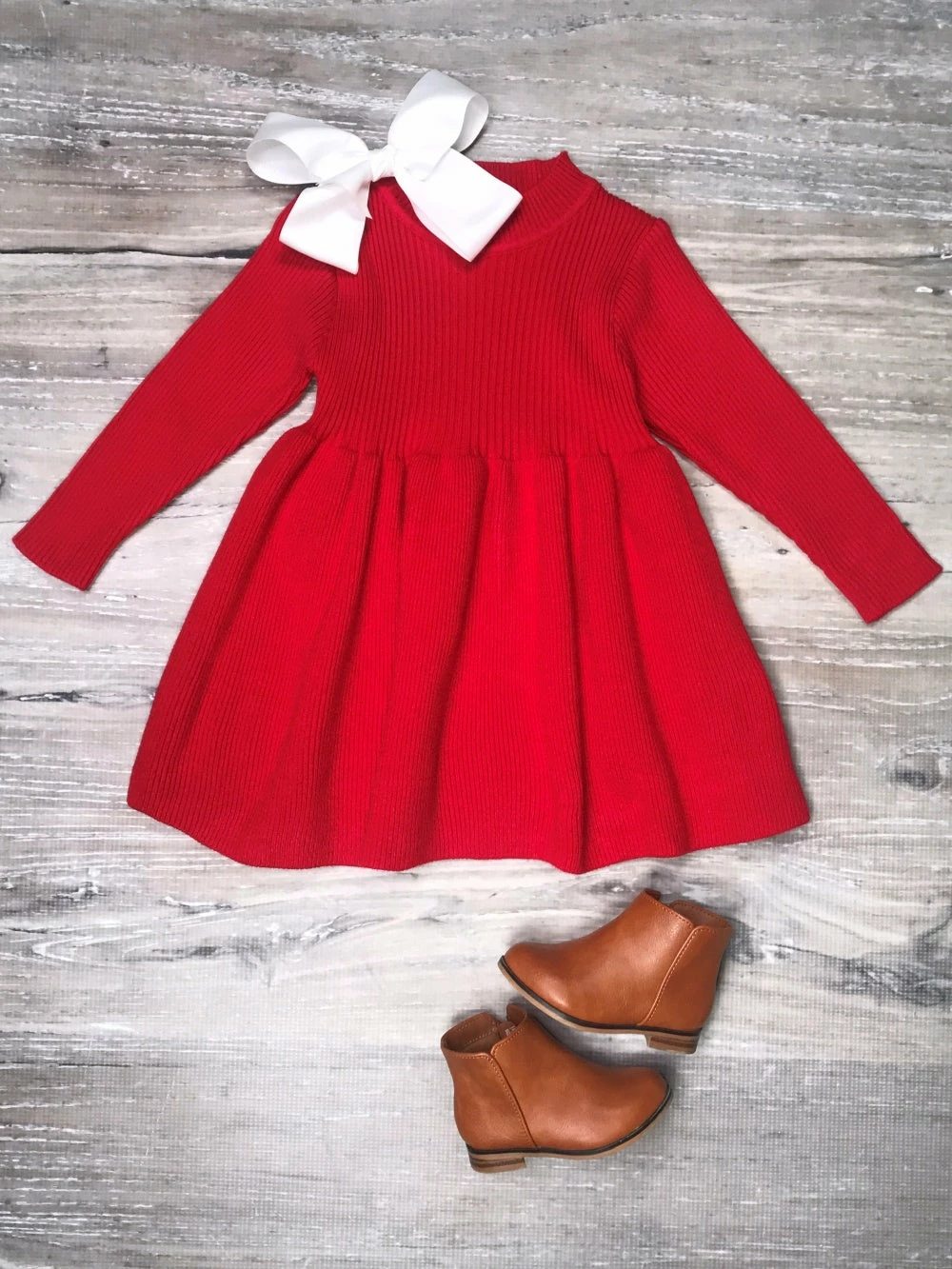 Add onto her staple holiday wardrobe with our Red Knit Girls Ribbed Knit Sweater Dress! The red long sleeve knit sweater dress features ribbed detailing, a mock turtleneck, and cinched waist. Don’t you just love the vibrant shade of red?! We are loving this dress with some booties or sneakers and a hair bow. The dress is perfect for running errands, holiday parties, family photos, shopping trips, and so much more! Pick up this trend setting dress for your little cutie and checkout our other stylish holiday pieces.