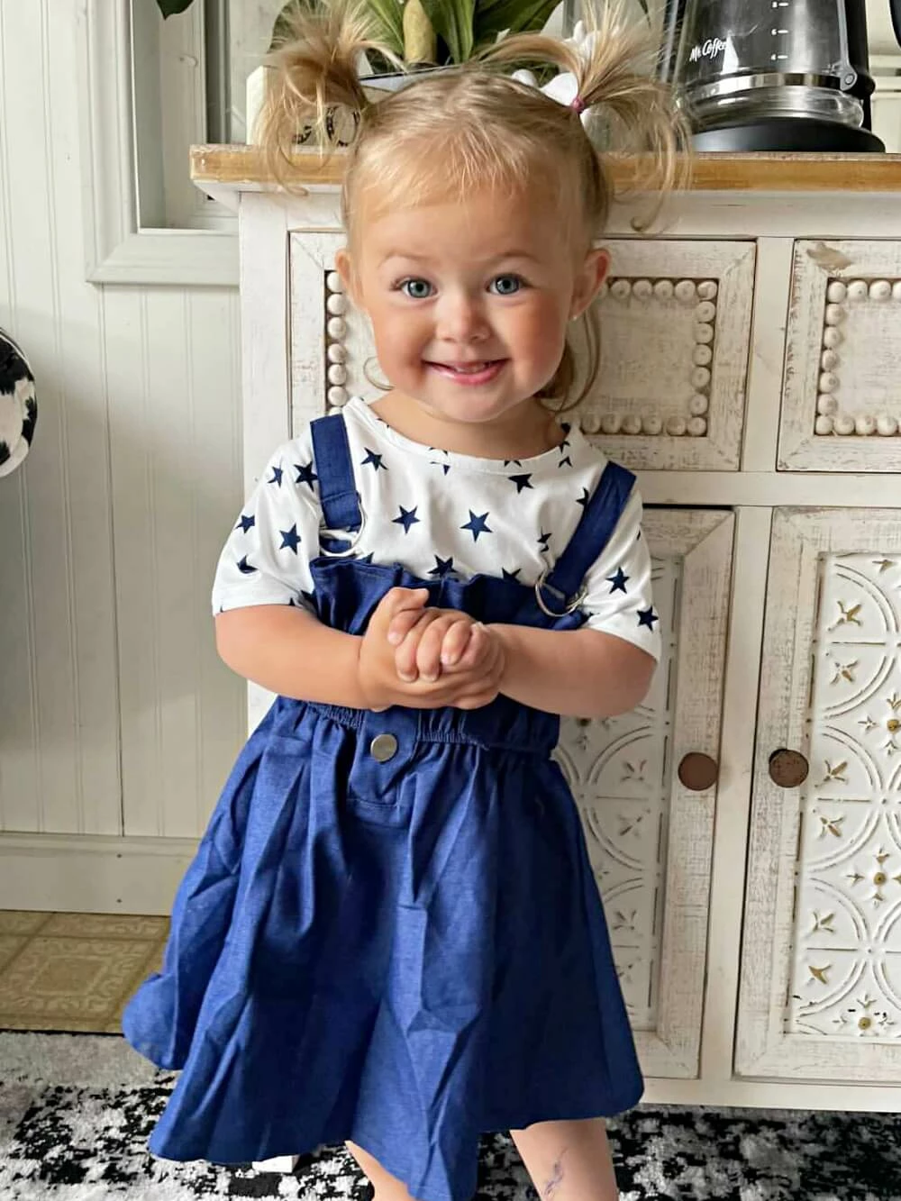 Our Shining Star Navy Chambray Girls Dress Set will have your little babe shinning brighter than she ever has before. The star studded set comes with a white short sleeve top that features a navy blue star pattern. The set also comes with a blue chambray dress that features a smocked cut along the top and buttons. We just love how your little one can mix and match both items with pieces that she already has in her collection. We are obsessing over this outfit with some sandals and a large navy blue hair bow. The dress set is perfect for school, running errands, parties, picnics, family photo shoots, vacations, and much much more! Buy now, babes!