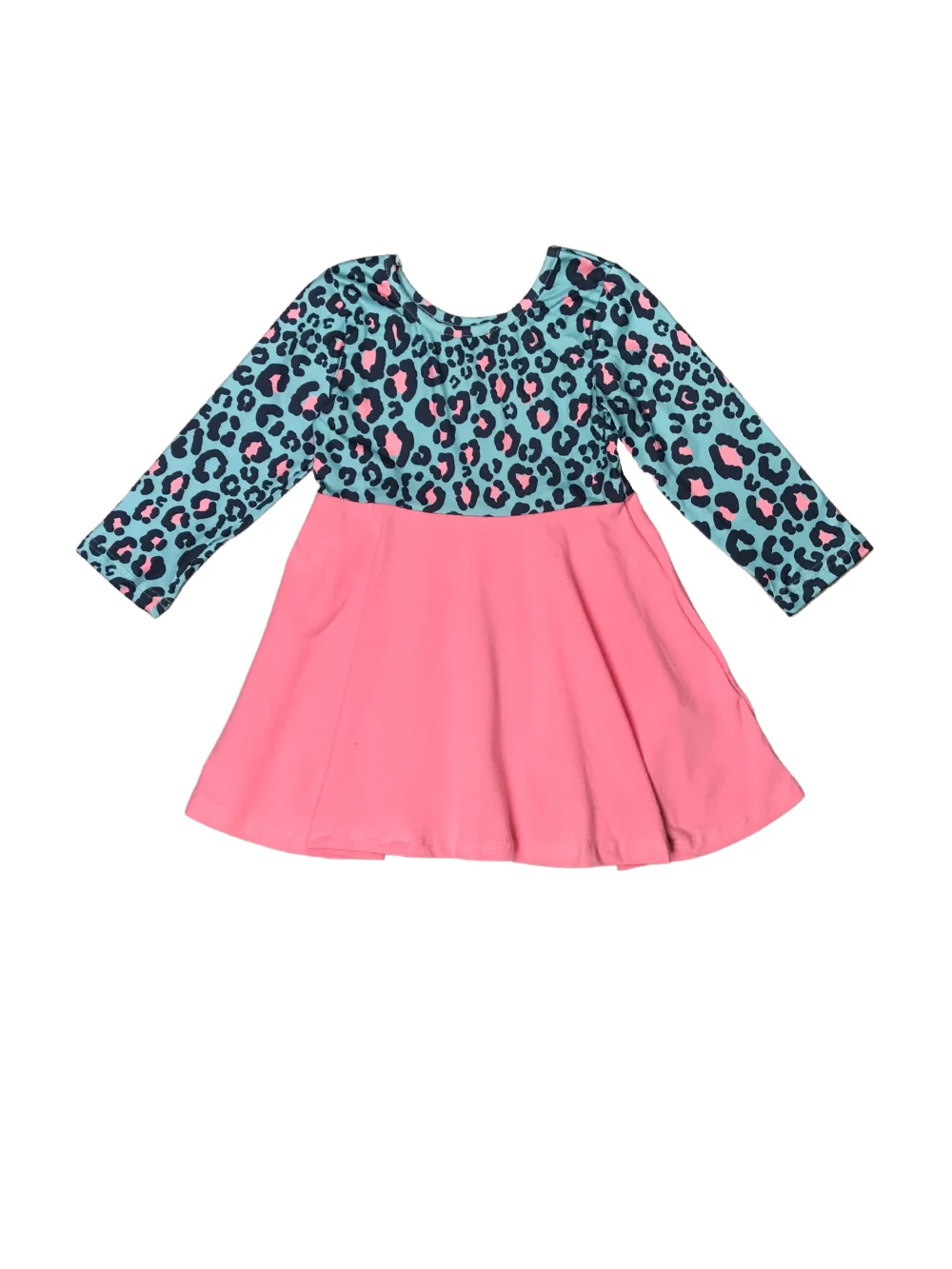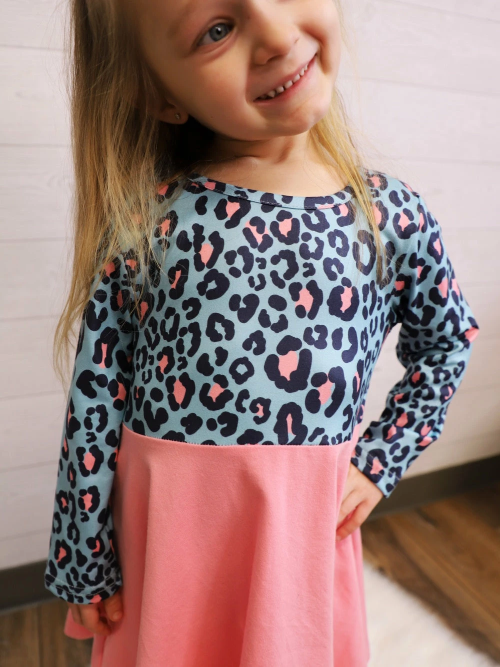 Dress up her wild side with our Wild At Heart Pink & Blue Leopard Long Sleeve Girls Skater Dress! The long sleeve dress features a blue leopard pattern along the top, a scoop neckline, and a vibrant shade of pink along the bottom. We are loving this girly dress with some knee high socks, booties, and a coordinating blue or pink hair bow. We are loving this dress for running errands, parties, playdates, shopping trips, and so much more. Pick up this stylish dress while her size is still in stock and be sure to checkout our other must have dresses.