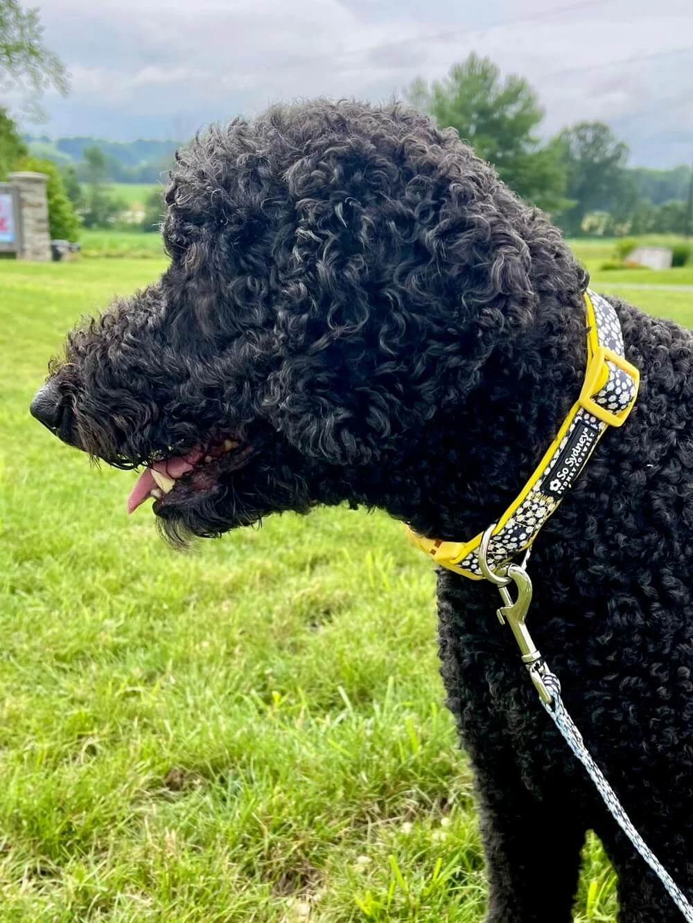 Bold and bright, our Yellow Daisy dog collar is the perfect look for your pup. We just love these bright colors and the bright daisy pattern. Pair with the matching dog leash for an easy coordinated look, or mix and match with a bright yellow leash. Perfect look for digging in the flower garden!